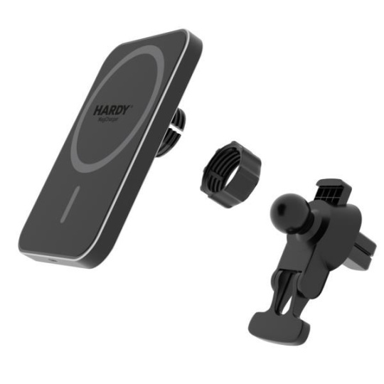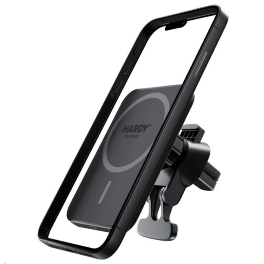 Tato high-tech nabíječka je určena pro chytré telefony iPhone s vestavěnou technologií MagSafe. Modul magnetické nabíječky zapadá do vnitřního magnetického kroužku telefonu a zajišťuje, že iPhone těsně přiléhá k nabíjecí ploše. Magnety drží telefon pevně na místě a chrání jej před pádem nebo změnou polohy za jízdy. Nastavitelný držák zvyšuje stabilitu držáku nabíječky na držáku větracího otvoru ve vozidle. Takže i na hrbolatých cestách je telefon v bezpečí. Stabilní a pohodlný – tak váš iPhone cestuje s nabíječkou HARDY® MagCharger!