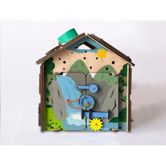 Po zdolání různých otevíracích mechanismů se dětem podaří otevřít dvířka do activity board domečku. V útulném domečku mohou ubytovat plyšová zvířátka nebo oblíbené panenky. Při otevírání a zavírání dvířek děti potrénují jemnou motoriku, koordinaci očí a rukou i logické myšlení.