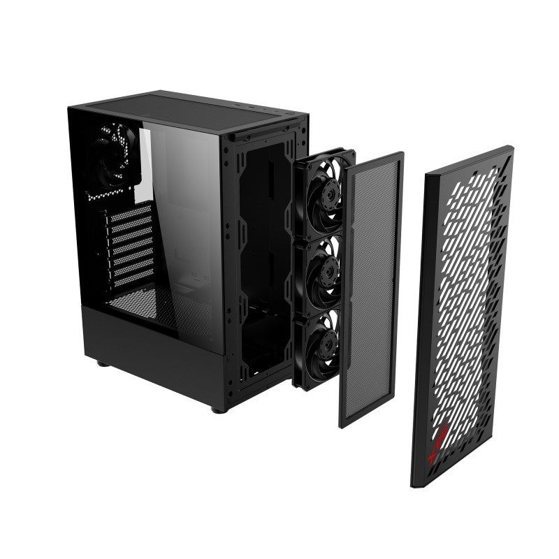 XPG VALOR AIR je kompaktní mid-tower ATX šasi s designem předního panelu Streamline-Carving a bočním panelem z 3mm tvrzeného skla. XPG VALOR AIR je k dispozici v černé a bílé barvě a je dodáván se 4 předinstalovanými 120mm ventilátory po vybalení. Vnitřní uspořádání je mechanicky navrženo tak, aby byla zajištěna kompatibilita s většinou běžných součástí a má maximální flexibilitu pro podporu. XPG VALOR AIR je vybaven grafickými kartami délky až 305 mm a vzduchovými chladiči CPU s výškou až 166 mm a nabízí více než většina šasi kompaktních rozměrů.