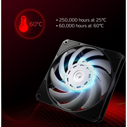 XPG VENTO PRO 120 PWM Fan has a verified MTTF (mean time to failure) 250,000 hours at 25?, or 60,000 hours at 60? ambient, which makes it ideal for heavier duty loads, e.g. more space-constrained builds with higher internal temperatures. Taking advantage of the high precision dual bearings, XPG VENTO PRO 120 PWM Fan can quietly operate and maintain stable at a large temperature range.
