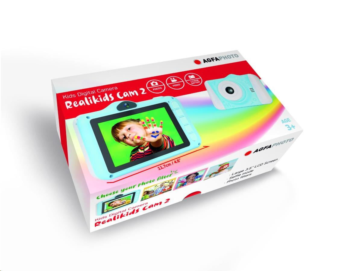 Realikids Cam 2 je ideální digitální fotoaparát pro děti. Jeho CMOS snímač umožňuje pořizovat nádherné fotografie a videa v HD. Má 3,5" LCD displej, na kterém si můžete prohlédnout vaše fotografie. Má také port pro micro SD kartydo 32 GB (není součástí dodávky). Jeho zábavný a ergonomický design zaručuje dokonalé uchopení a potěší každého malého fotografa.