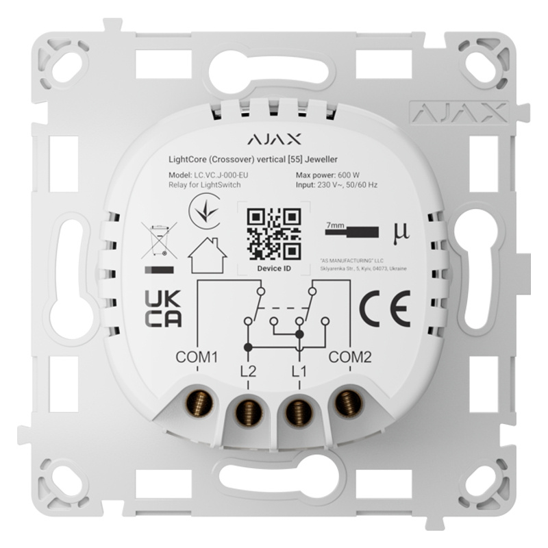 Ajax LightCore Crossover Jeweller - relé pro ovládání světelných a jiných zařízení, spínač řazení 7 - křížový - vertikální instalace.