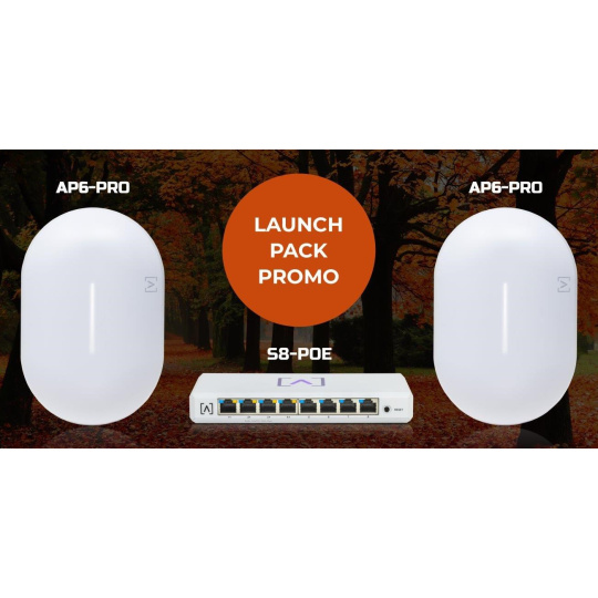 Cenově zvýhodněná sada od Alta Labs se slevou $80 skládající se ze dvou AP6 Professional Wi-Fi 6 Access pointů a jednoho S8 POE Switche. Po dobu celé akce je možné každým zákazníkem zakoupit pouze 1 sadu. Akce není časově omezena. S8 PoE Switch S8-POE od společnosti Alta Labs je cloudově managovatelný, menší desktopový switch do méně exponovaných míst s plastovým šasi a 8x 10/100/1000 ethernetovými porty, z čehož 4 porty podporují 802.3af/at PoE+ standardy (30 W / port) s celkovým PoE budgetem 60 W. AP6 Professional Přístupový bod AP6 Professional od Alta Labs má kompaktní tvar, elegantní design a umožňuje bezproblémovou integraci do jakéhokoliv komerčního či rezidenčního prostředí. AP6-Pro je napájeno pouze přes ethernet pro jednoduchou a čistou instalaci a má navíc IP54 krytí pro širší použití i mimo vnitřní prostory. Mimořádně dobrou práci odvedli tvůrci u jednotlivých funkcí jako je spolehlivý roaming řešený přes 802.11r/k/v standardy, ověřování více hesly při stejném SSID pro oddělení sítí na základě hesla, nebo blokování obsahu pomocí DPI enginu, které nevyžaduje žádný další hardware a ani nesnižuje propustnost Access Pointu. Obsah balení • S8 POE switch + napájecí adaptér, šroubky, držák na zeď • (2) AP6-Pro + držák na stěnu, šroubky Bezdrátové vlastnosti Bezdrátové připojení 2.4 + 5 GHz (dual band) WiFi standardy 802.11ax, 802.11ac, 802.11n, 802.11a, 802.11b/g Mesh protokoly 802.11r/k/v Přenosová rychlost - 2.4GHz [Mb/s] 574 Přenosová rychlost - 5GHz [Mb/s] 5800 Vysílací výkon 2.4GHz [dBm] 23 Vysílací výkon 5GHz [dBm] 26 2.4GHz MIMO 2 x 2 5GHz MIMO 4 x 4 Šifrování WPA, WPA2, WPA3 Typ antény Vestavěná Počet vestavěných antén 4 Roaming Ano Zisk antény [dBi] 3,3, 4,3 Konektory a rozhraní Rychlost LAN (1) 10/100/1000Mbps Ostatní Bluetooth Napájení Typ napájení PoE Typy PoE PoE-In (pouze) Max. spotřeba energie [W] 25 Napájení přes PoE 802.3at, 42 .. 57V DC Fyzické charakteristiky Stupeň krytí IP54 Provedení Na zeď, Na strop Použití Vnitřní Tlačítka Reset Provozní teplota [°C] -30 až 60 Hmotnost [g] 400 Hloubka [mm] 32 Šířka [mm] 125 Výška [mm] 190 Software Operační mód Access Point Management Alta Labs Controller Podpora IPv6 Transparentní (režim bridge) Výchozí IP adresa Dynamická z DHCP Výchozí jméno a heslo Nastavuje se při prvním spuštění.