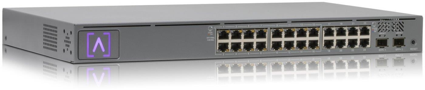 S24-POE od společnosti Alta Labs je cloudově managovatelný rackmount switch s 24x 10/100/1000 ethernetovými porty, z čehož 16 portů podporuje 802.3af/at PoE+ standardy (30W/port) s celkovým PoE budgetem 240W. Pro jednoduché rozšíření na delší vzdálenost je switch vybaven i 2 optickými SFP+ porty s Multi-Gigabitovou rychlostí (1/2.5/5 nebo 10 Gbps). Alta Labs S24 PoE Switch Klíčové funkce Power over Ethernet, PoE budget 240W (2) optické SFP+ porty - Multi-Gigabitové rychlosti Jednoduché nastavení přes Bluetooth Cloud management s mobilní aplikací - Access Pointy i Switche v jednom cloudu VLAN stacking Omezení rychlosti na výstupu a vstupu IGMP snooping *(budoucí firmware) 802.1X autentizace *(budoucí firmware) Detekce zakruhování *(budoucí firmware) DHCP snooping *(budoucí firmware) Přizpůsobitelný Dashboard Site manager Montáž do racku Další funkce přijdou s automatickými aktualizacemi firmwaru Obsah balení Zařízení Napájecí kabel Úchyty do 19" racku Konektory a rozhraní Rychlost LAN (24) 10/100/1000Mbps Optické rozhraní (2) 1G/10Gbps Ostatní Bluetooth Napájení Typ napájení Ze sítě (230V) Typy PoE PoE-Out (pouze) Podporované PoE-Out standardy 802.3af, 802.3at Počet PoE Out portů 16 PoE budget [W] 240 Max. spotřeba energie [W] 53 Napájení přes konektor/svorkovnici 230V AC Fyzické charakteristiky Provedení Rackmount Ventilátory (2) 40 x 40 mm Šasi Kovové Tlačítka Reset Provozní teplota [°C] -5 až 50 Hloubka [mm] 254 Šířka [mm] 442 Výška [mm] 44 Obecné Jumbo rámec [Bytes] 9000 Rychlost přepínání [Gbps] 88 Tabulka MAC adres 16000 Software Management Alta Labs Cloud Funkce VLAN, QoS Výchozí IP adresa Dynamická z DHCP.