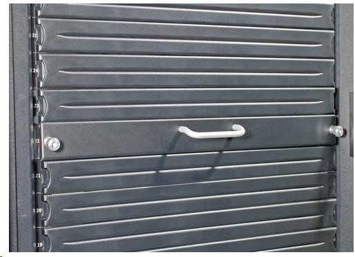 Modulární zaslepovací panel 1 U pro řízení proudění vzduchu, pro jehož instalaci není třeba žádné nářadí, zamezuje zabráním nepoužitého prostoru ve stojanu zpětnému oběhu vzduchu (počet 200)..