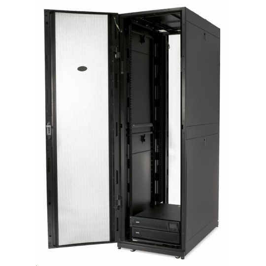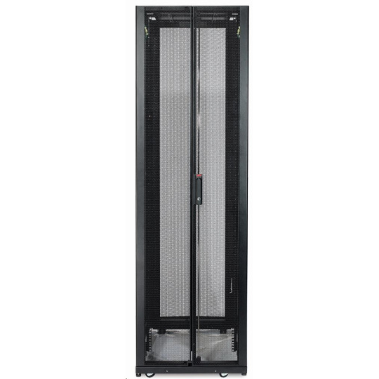 Široká skříň s možnostmi rozšířené správy kabelů pro servery s vysokou hustotou napájení a síťové komponenty. Výška 45U umožňuje snadný transport dveřmi.