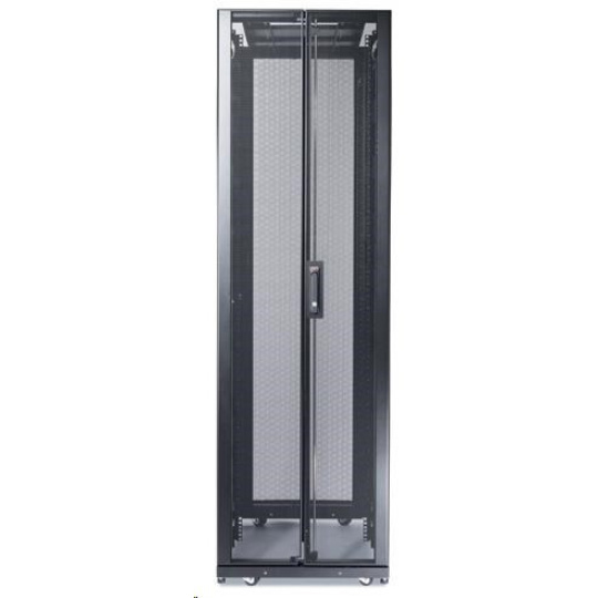Stojanová skříň s rozšířeným chlazením, distribucí napájení a správou kabelů pro servery a síťové komponenty v prostředích IT. Zahrnuje: Kolečka, Dveře, Zemící kolíky, Instalační příručka, Vyrovnávací paty, Montážní hardware, Horní kryt, Boční panely.