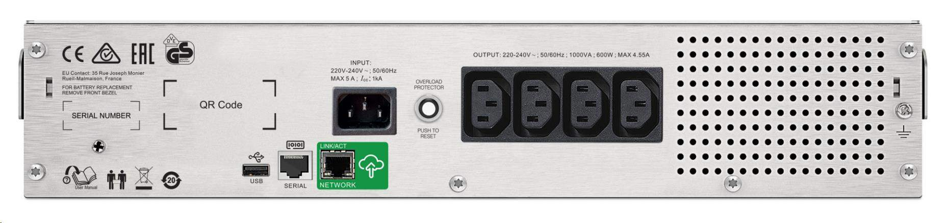 APC Smart-UPS C 1000VA LCD RM 2U 230V with SmartConnect (600W)