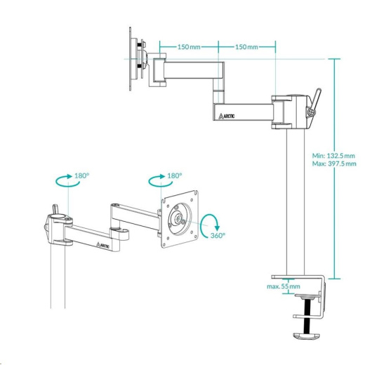 ARCTIC držák na monitor X1, ocel, matná černá