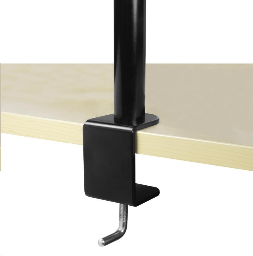 The monitor arm can be mounted on most surfaces with the sturdy and adjustable clamp which fits the edge of your desk in various thicknesses.