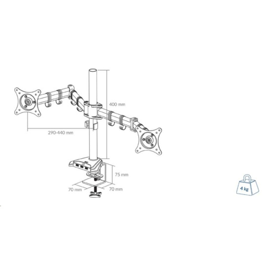 Maximum Monitor Weight: 15 kg (33 lbs) per mount