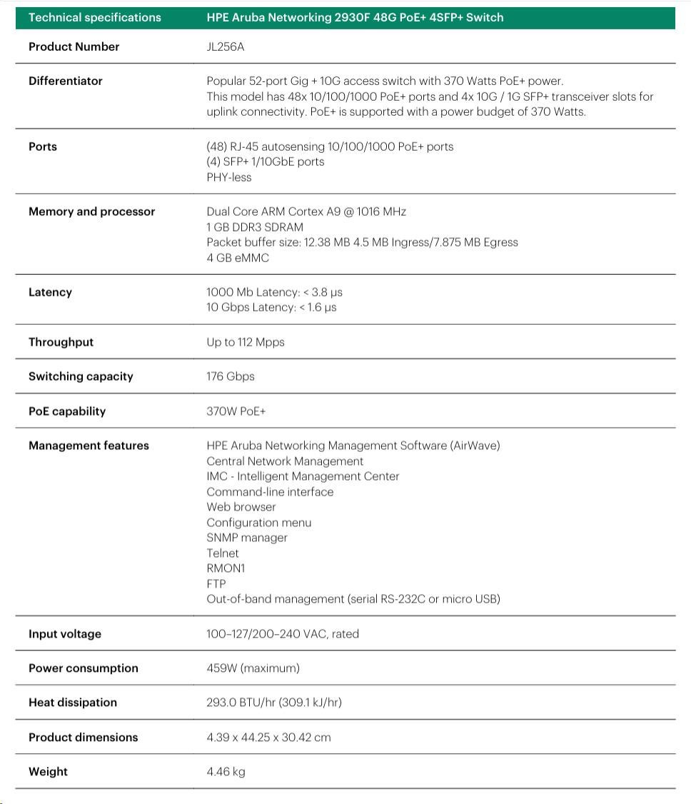 Aruba 2930F 48G PoE+ 4SFP+ Swch RENEW JL256A.