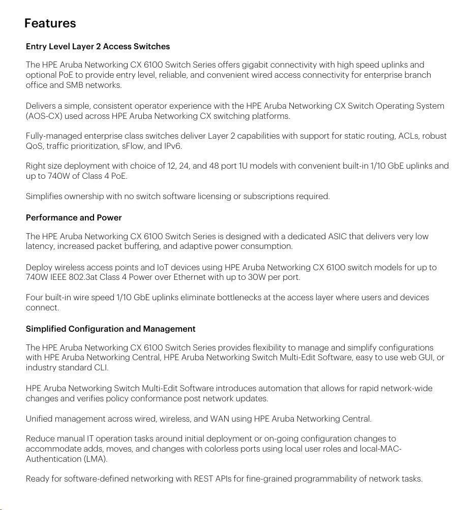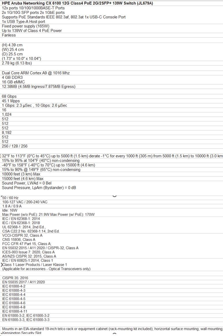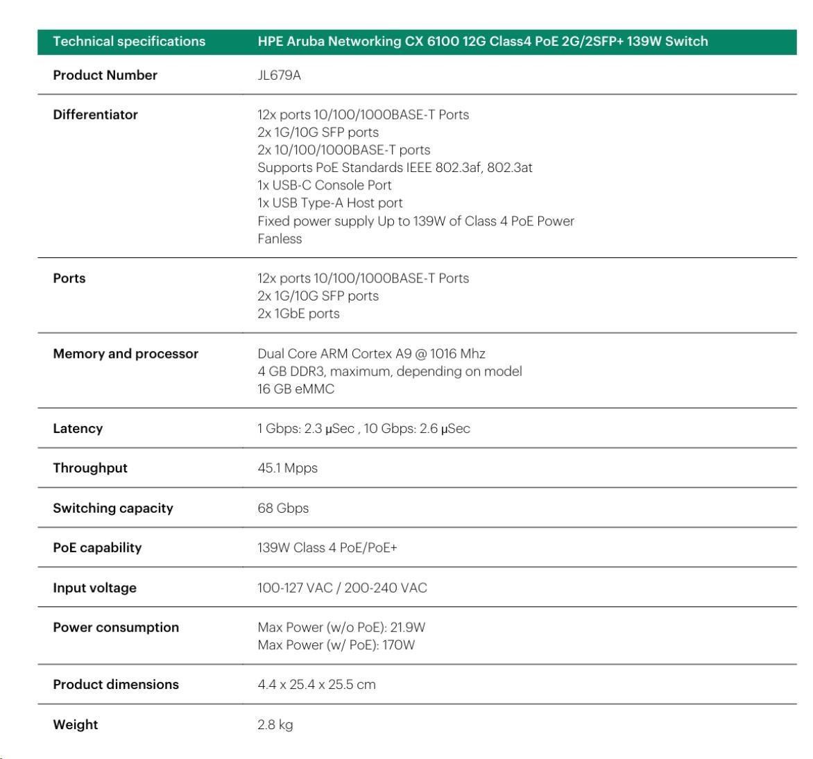 Aruba 6100 12G Class4 PoE 2G/2SFP+ 139W Switch (JL679A)