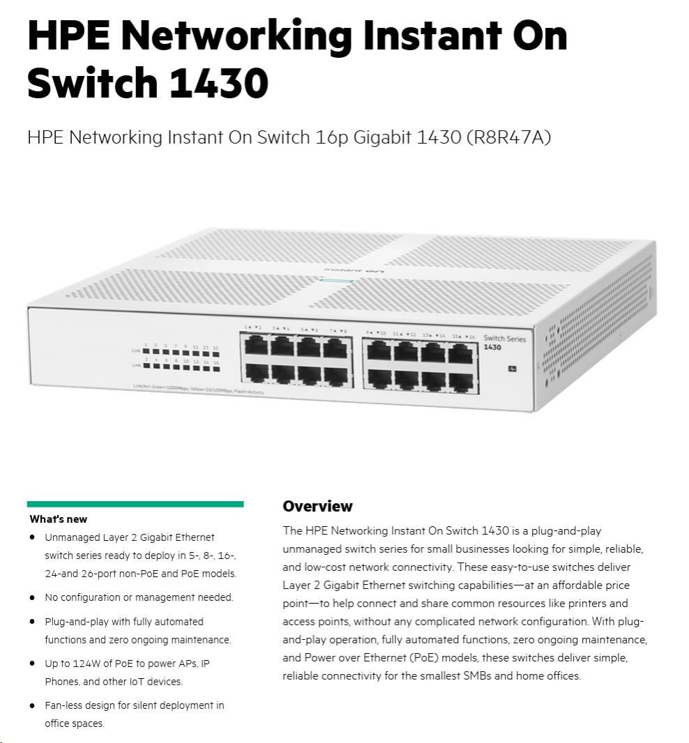 HPE Networking Instant On Switch 16p Gigabit 1430 (R8R47A)
