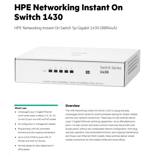 HPE Networking Instant On Switch 5p Gigabit 1430 R8R44A