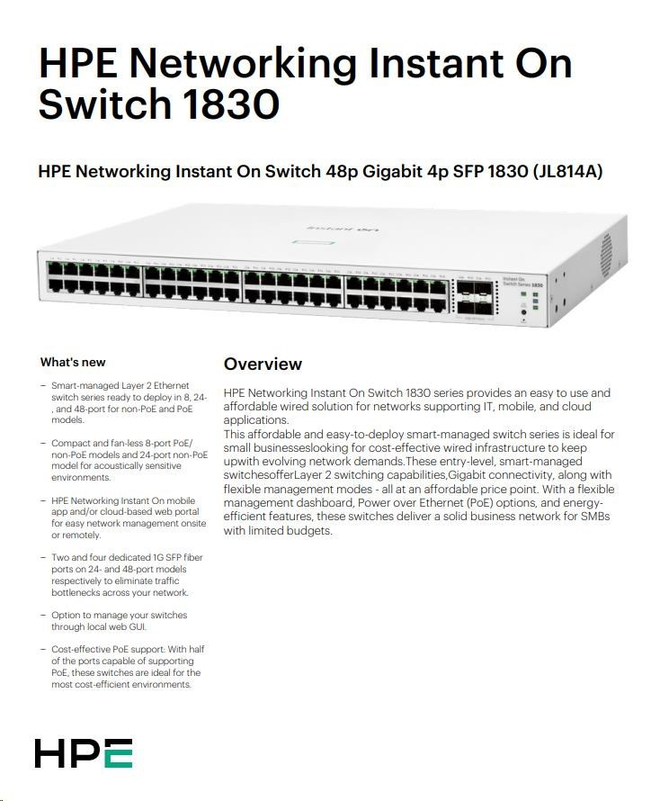 HPE Networking Instant On Switch 48p Gigabit 4p SFP 1830 (JL814)