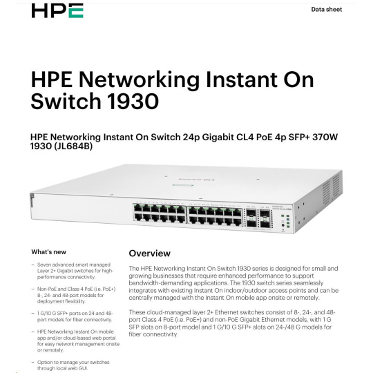 | Aruba Instant On 1930 24G Class4 PoE 4SFP/SFP+ 370W Switch (JL684B) | ||
