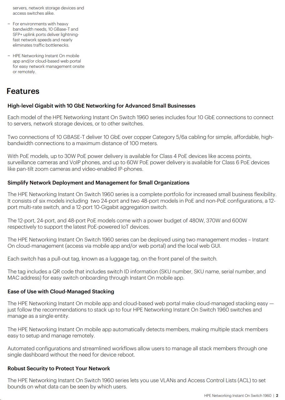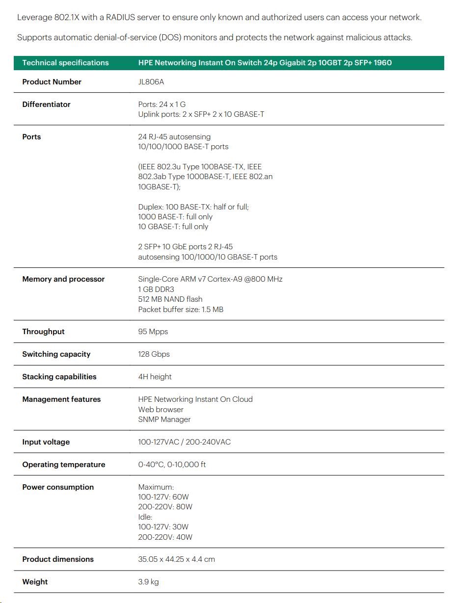 HPE Networking Instant On Switch 24p Gigabit 2p 10GBT 2p SFP+ 1960.