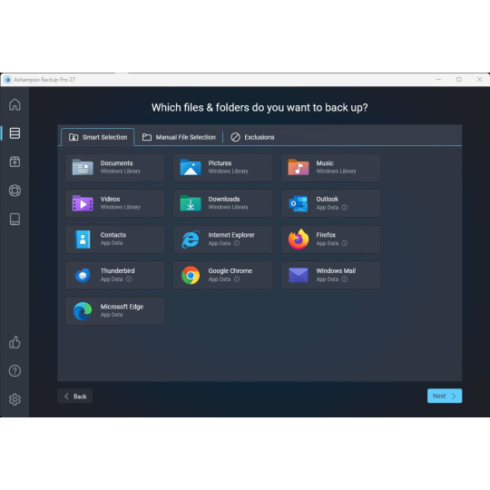 Naše řešení zálohování je vhodné pro všechny, od začátečníků až po specialisty na zabezpečení dat. Proto jsme naše zálohovací plány vytvořili tak flexibilní a univerzální, jak to jen jde! Nové předvolby uloží vaše data pouhými několika kliknutími. Chcete zálohovat pouze dokumenty nebo celý systém? Chcete uložit e-maily, kontakty nebo data prohlížeče? Nebo dáváte přednost propracovanějšímu přístupu s vlastními plány přizpůsobenými vašim potřebám? I velmi sofistikované zálohovací plány vyžadují pouze několik kliknutí. Ať už jednoduché nebo sofistikované, vytváření zálohovacích plánů je s novým Ashampoo Backup Pro hračkou!