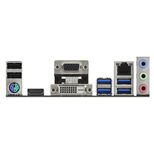 | Rear panel I/O | - 1 x PS/2 Mouse/Keyboard Port - 1 x D-Sub Port - 1 x DVI-D Port - 1 x HDMI Port - 2 x USB 2.0 Ports (Supports ESD Protection) - 4 x USB 3.2 Gen1 Ports (Supports ESD Protection) - 1 x RJ-45 LAN Port with LED (ACT/LINK LED and SPEED LED) - HD Audio Jacks: Line in / Front Speaker / Microphone |