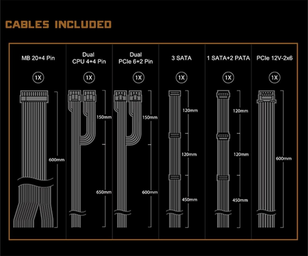 | PCIe 12V- 2x6 | 1x / 1x (600 mm) |
