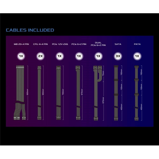 | Dueal PCIe 6+2 Pin Konektor | 1x / 2x (675 + 75 mm) |