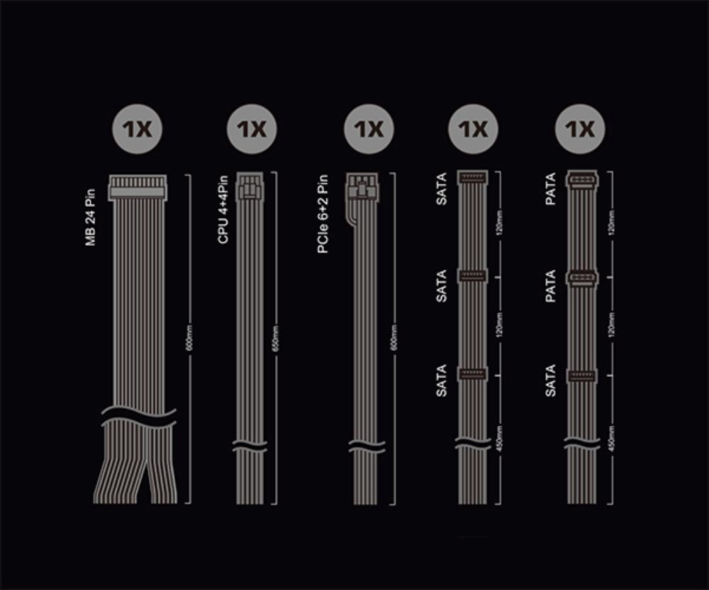 | ATX 20+4pin Konektor | 1x / 1x (600mm) |
