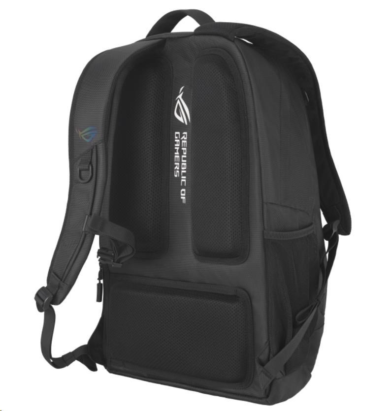Objem 35 litrů s mnoha vnitřními přihrádkami a polstrovaným pouzdrem na notebook, do kterého se vejde až 18palcový notebook. Odvážný estetický vzhled brašny ROG umocňuje reflexní nápis cybertext. Vysoce odolný polyester 1260D je odolný proti poškrábání a vodě. Osobní věci bezpečně uložíte do skrytých zadních kapes.