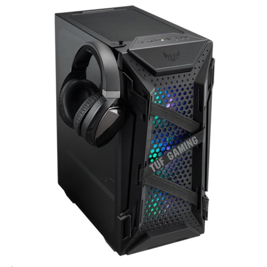 ASUS TUF Gaming GT301 ATX mid-tower compact case with tempered glass side panel, honeycomb front panel, 120mm AURA Addressable RGB fan, headphone hanger and 360mm radiator support.
