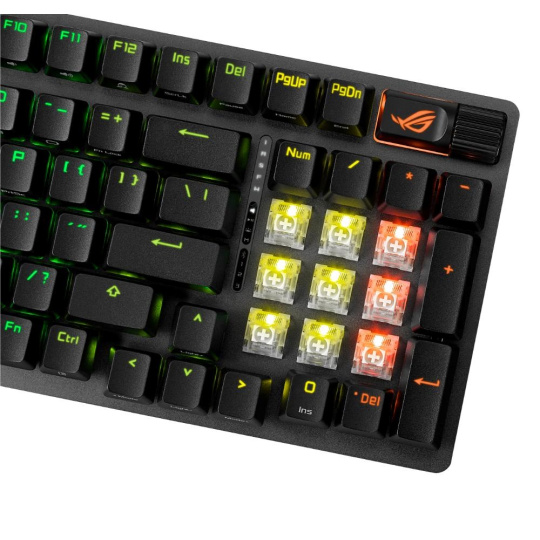 - Unikátní mezerník s motivem ROG: UV potažený mezerník se speciálním označením ROG a třemi RGB LED diodami na spodní straně