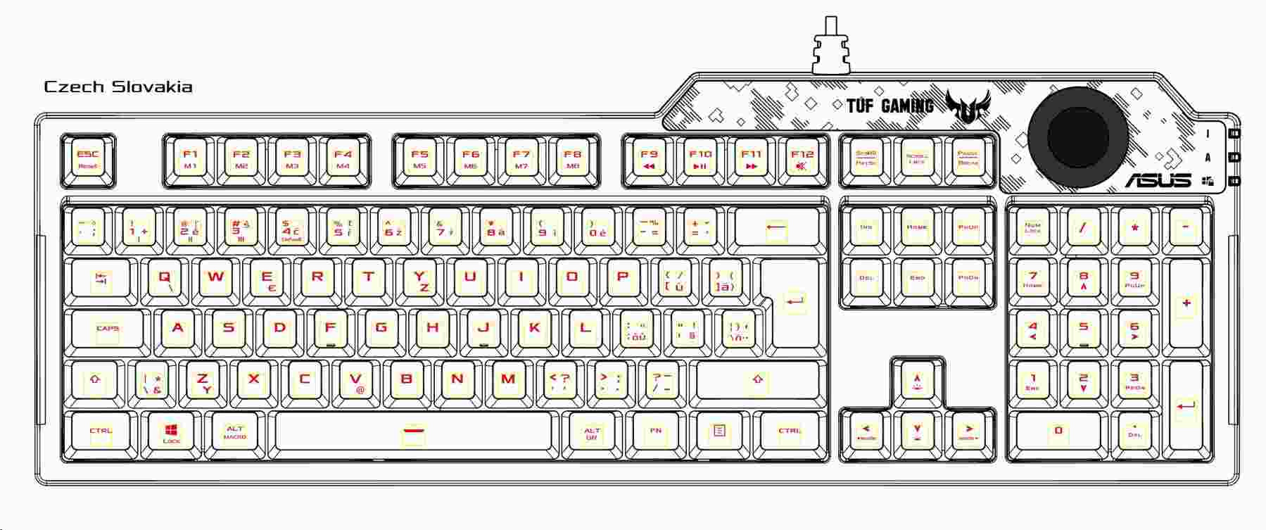 - Tactile TUF Gaming switches with 19-key rollover for responsive, reliable performance
