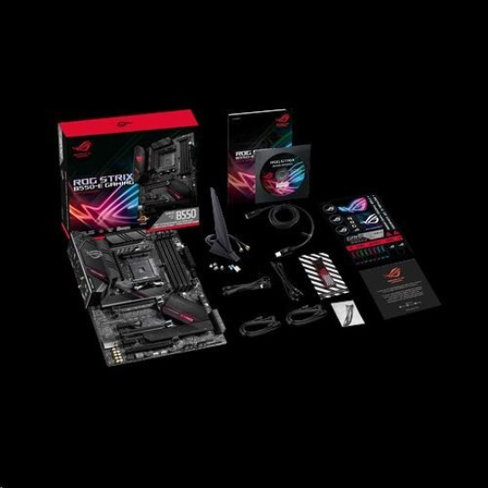 AMD B550 Gaming ATX motherboard with PCIe® 4.0, teamed power stages, Intel® 2.5 Gb Ethernet, WiFi 6 (802.11ax), dual M.2 with heatsinks, SATA 6 Gbps, USB 3.2 Gen 2 and Aura Sync RGB lighting