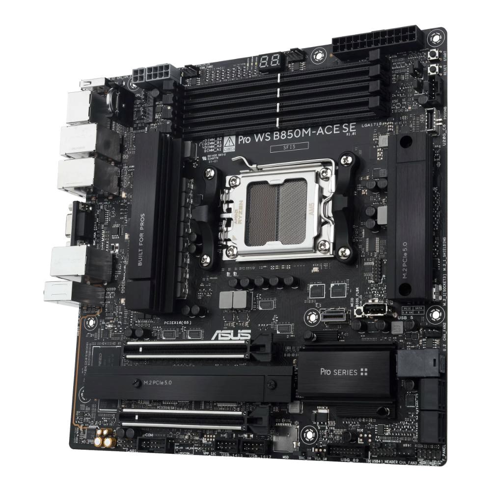 ASUS Pro WS B850M-ACE SE AMD Micro-ATX motherboard, with server-grade IPMI management, PCIe 5.0 x 16, PCIe 5.0 M.2, PCIe 5.0 MCIO, U.2 connector, 10Gb and 2.5Gb Ethernet, ready for USB4.