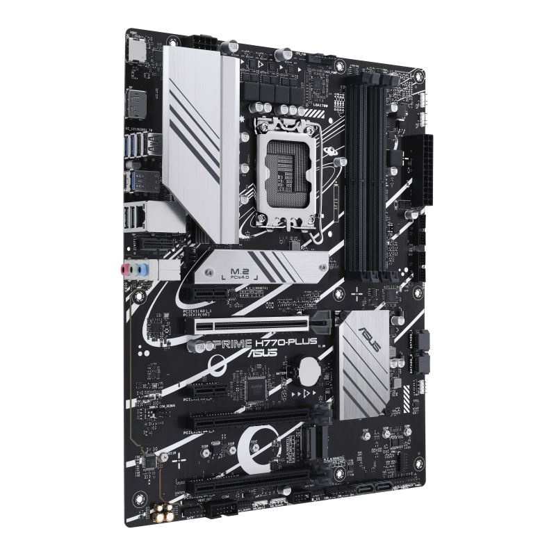 ASUS Prime H770-PLUS, an Intel® H770 LGA 1700 ATX motherboard with PCIe 5.0, three PCIe 4.0 M.2 slots, DDR5, Realtek 2.5Gb Ethernet, DisplayPort, HDMI™, USB 3.2 Gen 2 Type-C®, Thunderbolt™ (USB4®) support, Aura Sync