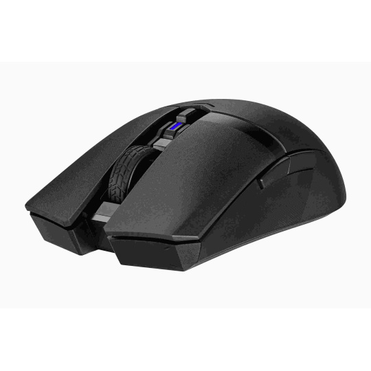 A lightweight ambidextrous gaming mouse with dual wireless modes, a 12,000 dpi sensor, six programmable buttons, PBT top cover with ASUS Antibacterial Guard, 100% PTFE mouse feet and Armoury Crate.