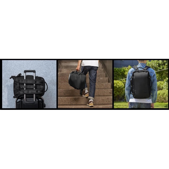 ProArt můžete používat jako běžný batoh nebo ho pomocí bočního držadla nosit jako aktovku. Batoh lze také připevnit ke kufru pomocí popruhu na zavazadla.