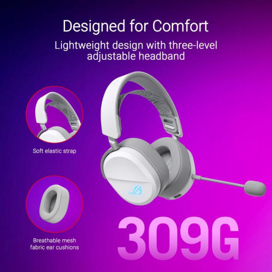 ASUS sluchátka ROG Pelta, Bezdrátové BT a RF 2.4GHz, ARGB, bílá