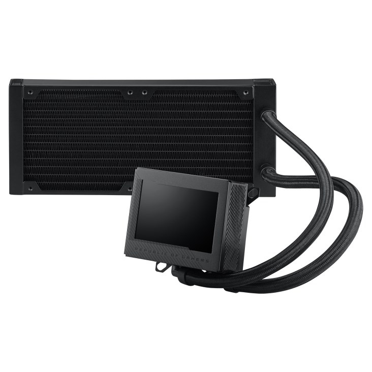 S ROG Ryujin III to půjde lépe než dobře. Jeho prostorný 3,5palcový LCD displej zobrazuje živé systémové statistiky nebo vaše vlastní umělecká díla a animované GIFy. Vespod je vestavěný ventilátor vylepšený o Axial-tech, který zlepšuje teplotu VRM základní desky až o 35 stupňů Celsia, a kombinace pumpy Asetek a studené desky 8. generace zajišťuje ještě nižší teploty CPU. Kapalina je přiváděna pomocí velkoryse dlouhých opletených trubek a chlazena radiátorem s vyšší kapacitou a třemi skvěle tichými 120mm ventilátory Noctua.