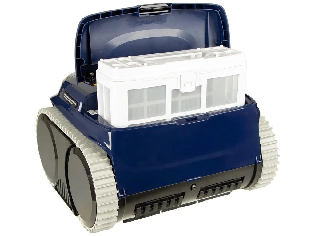 - Baterie má inteligentní řízení výkonu, které rovnoměrně rozděluje energii mezi všechny tři motory , vysavač tak nepřetěžuje baterii, pohybuje se plynule, s optimálním sacím výkonem a precizně čistí celý bazén.