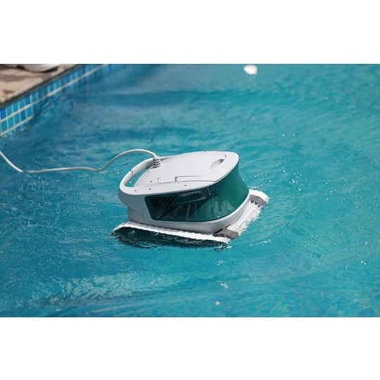 Údržba je velmi jednoduchá – vysavač lze otevřít shora i zespodu, filtrační koš snadno vyjmete, vysypete a opláchnete pod tekoucí vodou. Zesílené pásy s vyšším třením umožňují překonávání hlavních odtoků, světel a drobných nerovností dna.