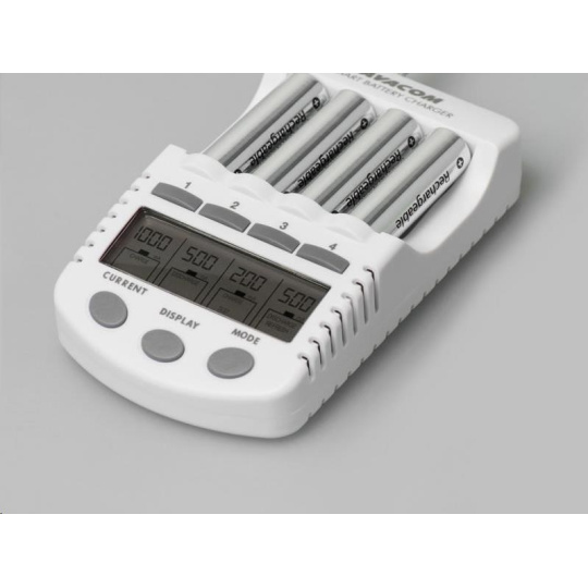 Inteligentní čtyřkanálová nabíječka tužkových AA a mikrotužkových AAA baterií. Nabíjí Ni-MH a Ni-Cd baterie. Nabíjecí proud 200, 500, 700, a 1000mA.