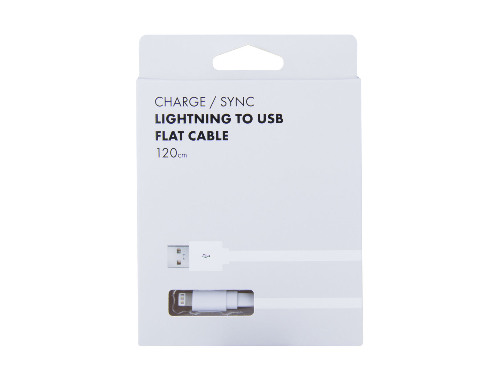 Datový a nabíjecí kabel s konektorem Lightning. Umožňuje přenášet data mezi Mac/PC a iPhonem, iPadem nebo iPodem. Délka kabelu je 120 cm. Plochý profil kabelu zamezuje zamotávání.