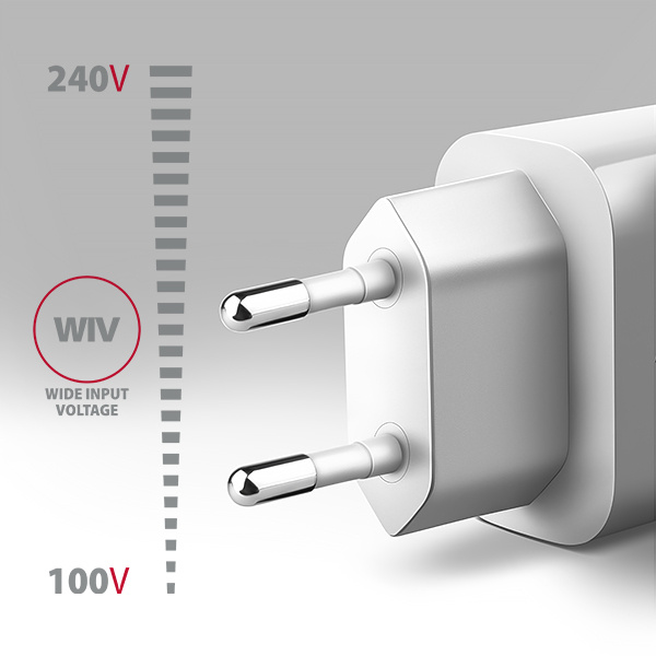 • Wide Input Voltage - funkce širokého rozsahu vstupního napětí, chrání adaptér proti podpětí a přepětí na vstupu a umožní použití více "národních napájecích standardů".