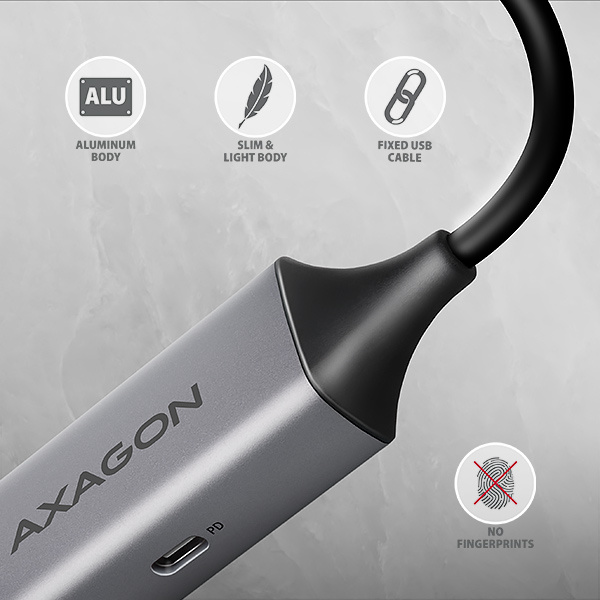 Kovový obal adaptéru je vyrobený z hliníku a zajišťuje tak dokonalou mechanickou ochranu a výborný odvod tepla. Díky kompaktním rozměrům a minimální hmotnosti je to ideální doplněk pro přenosné počítače a další mobilní zařízení.