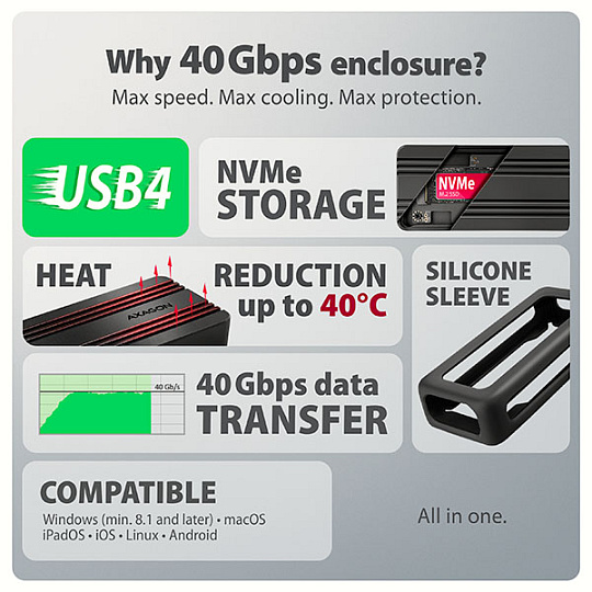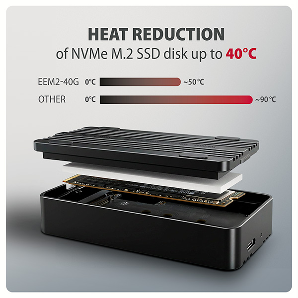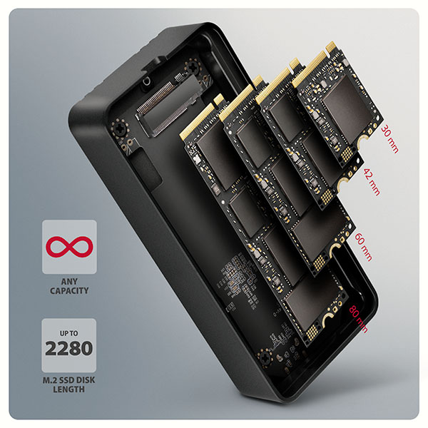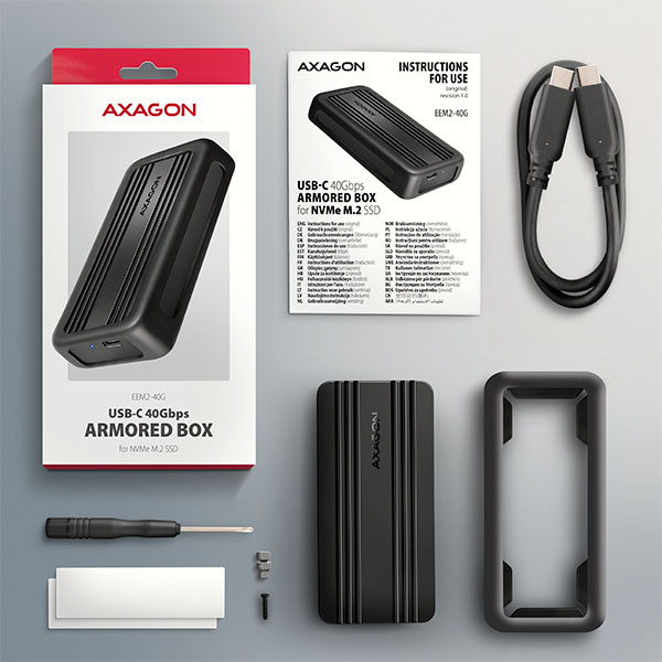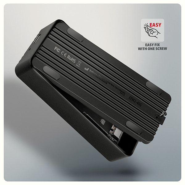AXAGON EEM2-40G, USB-C 40Gbps externí box pro M.2 NVMe SSD, zesílený hliník