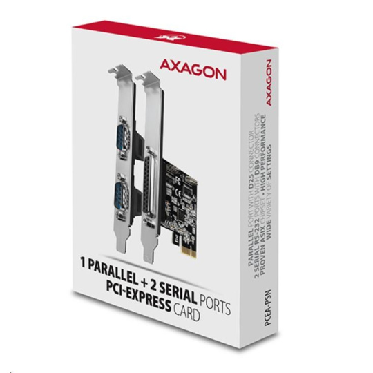 AXAGON PCEA-PSN, PCIe řadič - 1x paralelní (LPT) + 2x sériový port (RS232) 250 kbps, vč. LP