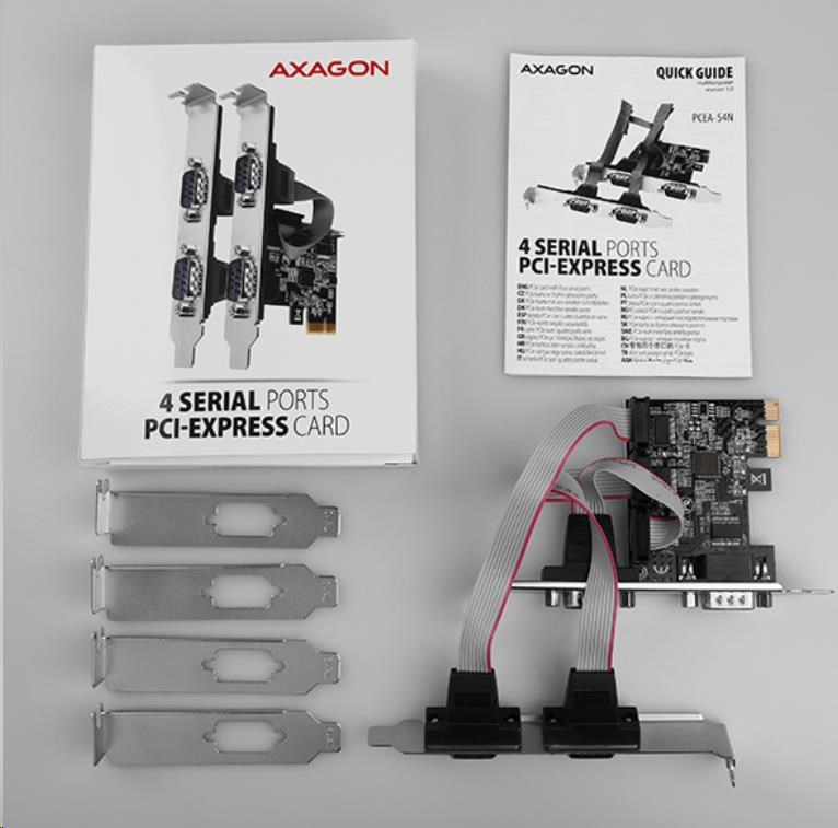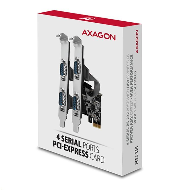 AXAGON PCEA-S4N, PCIe řadič - 4x sériový port (RS232) 250 kbps, vč. LP