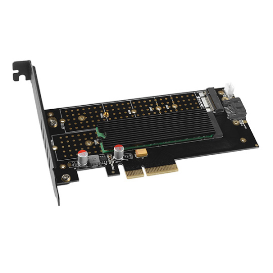 Velice kvalitní zpracování karty včetně větracích poměděných otvorů napomáhá lepšímu odvodu tepla vzniklého při provozu M.2 SSD disků. K chlazení M.2 SSD disků přispívá kovový kryt s ventilátorem a přiložený pasivní chladič vč. teplovodivých podložek. Výsledkem je ideální kombinace pasivního i aktivního chlazení M.2 SSD disků a odvod tepla. Díky chlazení a nižší teplotě až o 35°C je možno využít maximální výkon osazených SSD.