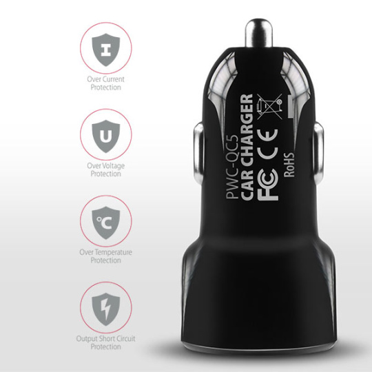 • 1x USB type A port QC: Quick Charge 3.0 - 3.6-6.5V/3A, 6.5-9V/2.1A, 9-12V/1.6A