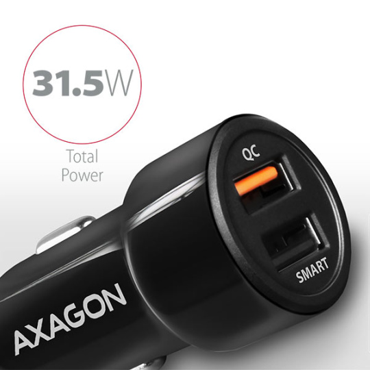 AXAGON PWC-QC5, QUICK a SMART nabíječka do auta, 2x port QC3.0/AFC/FCP + 5V-2.6A, 31.5W